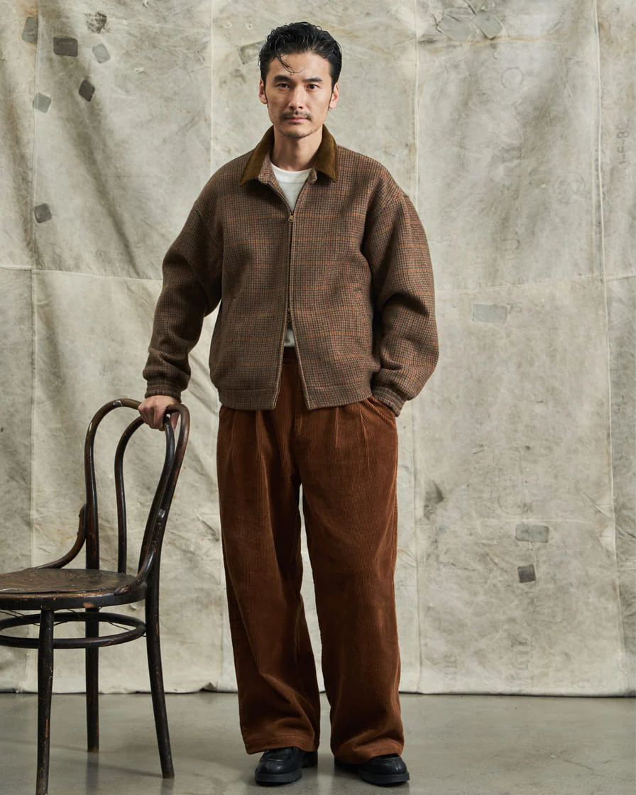 This corduroy trouser is simply designed with a classic wide straight leg cut and features two pleats front, giving out a smart and relaxed fit.