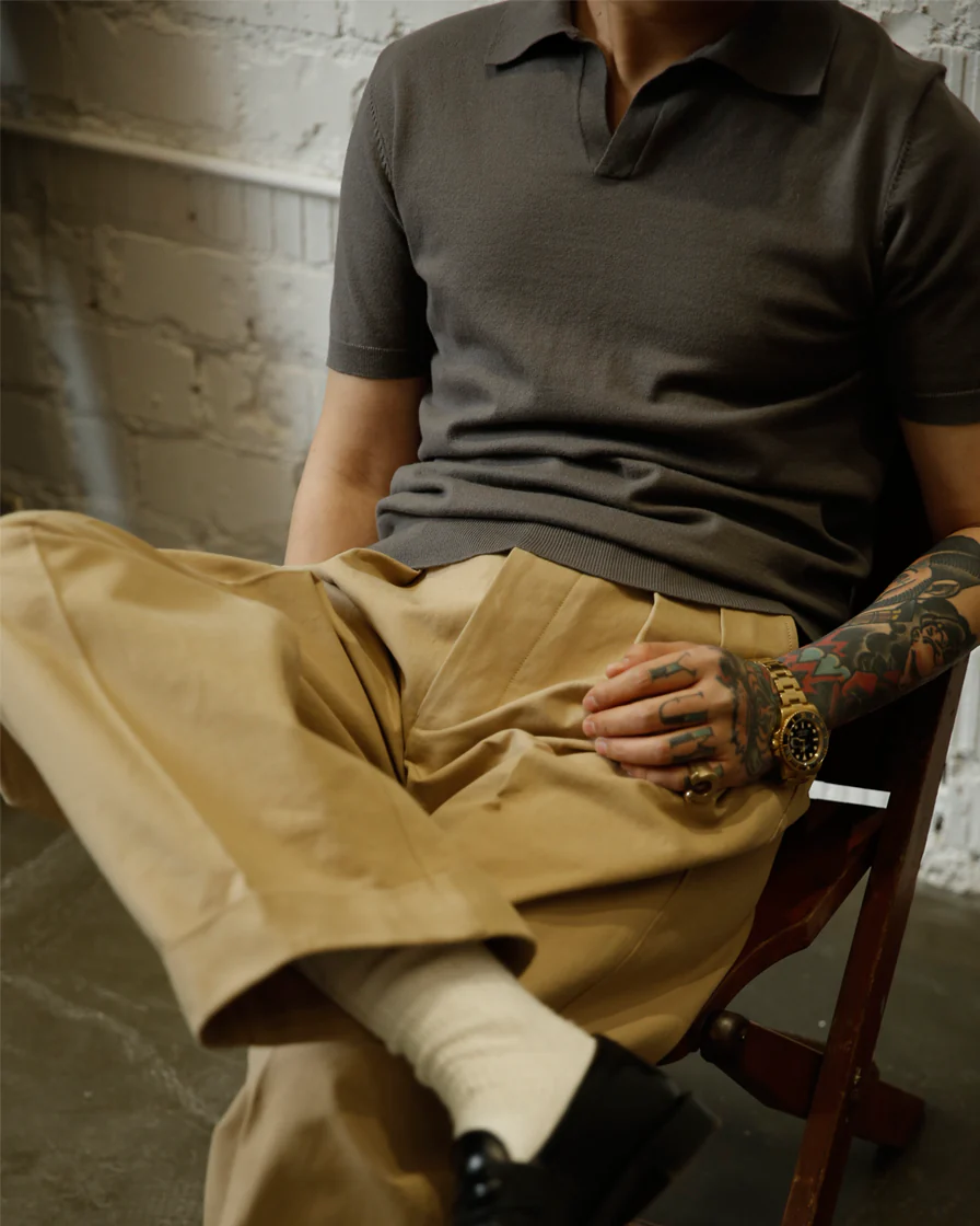 This fly collar buttonless polo shirt could be your favourite daily-wear summer garment. Grey colour could match most of the other colour garments. Constructed from combed cotton, soft feeling and easy-to-vent are the two main features of this type of material. This Polo shirt is an ideal inner shirt for the Spring/Summer season with bold colours enabling a variety of styling.