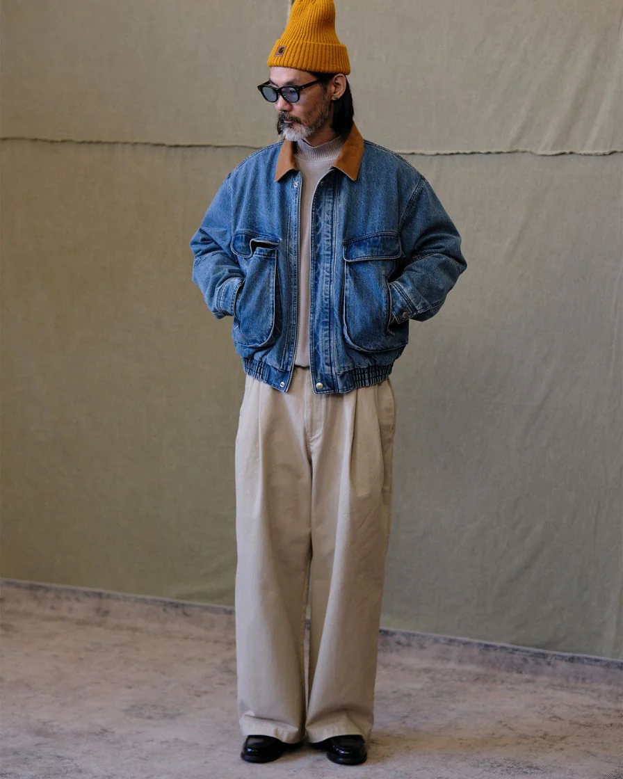 Channeling 80s heritage with contemporary craftsmanship, this denim bomber delivers authentic rugged appeal through carefully washed fabric that develops character with wear.